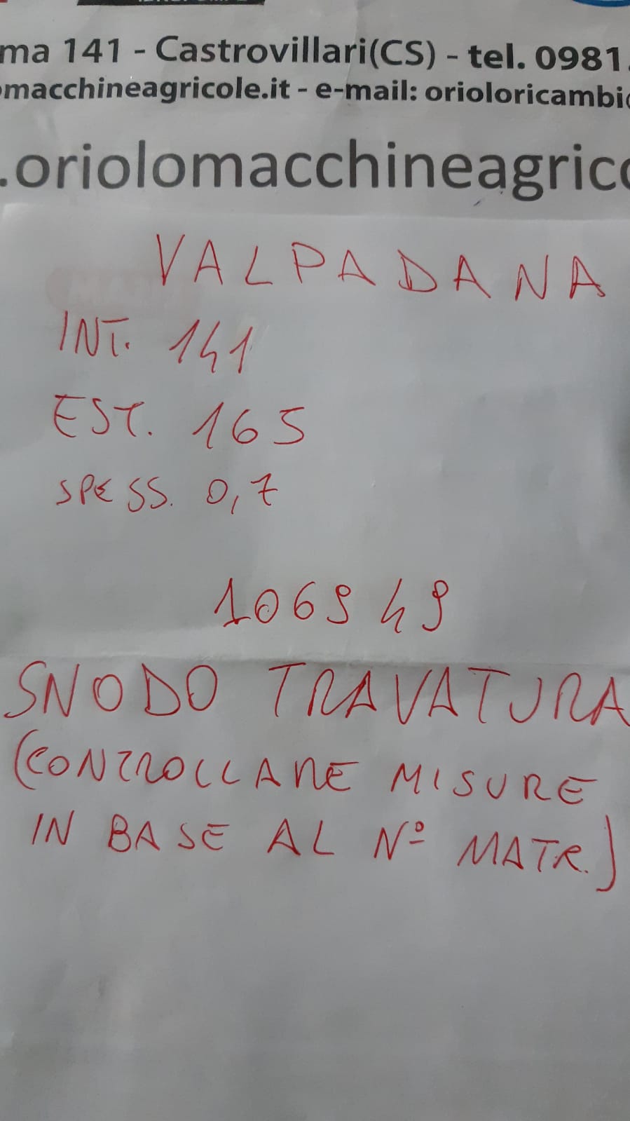 SNODO TRAVATURA TRATTORE VALPADANA valpadana